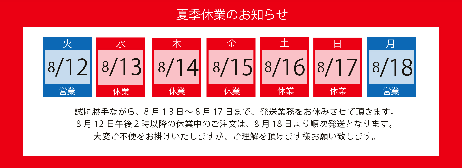夏季休業のお知らせ