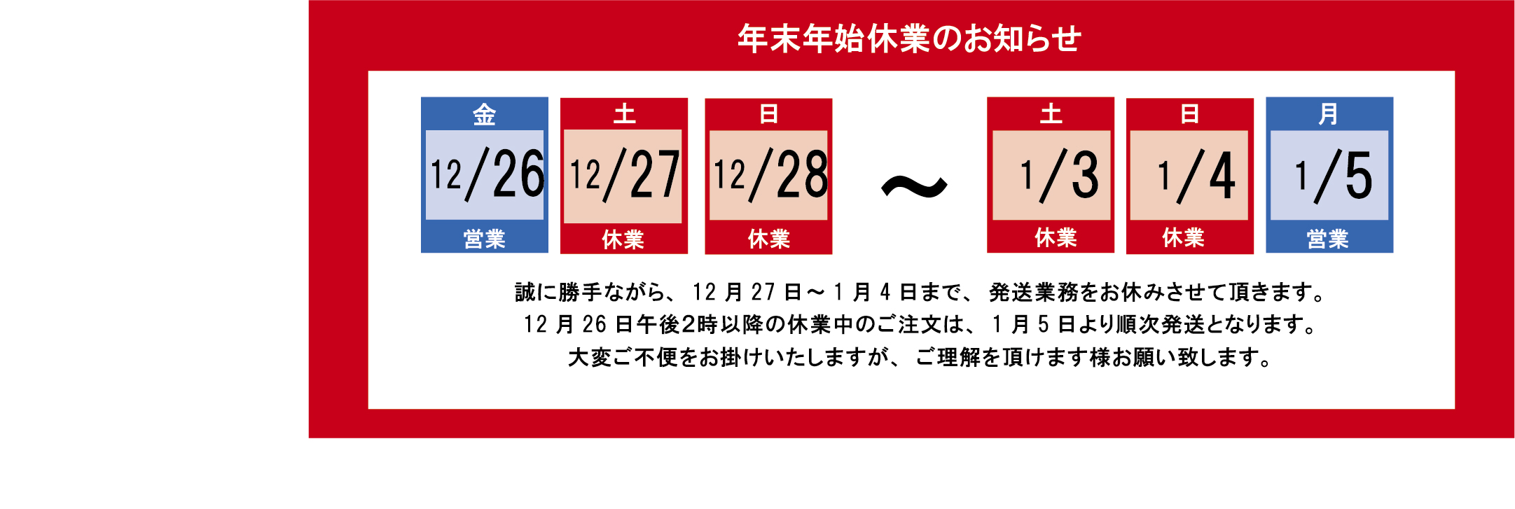 年末年始休業のお知らせ